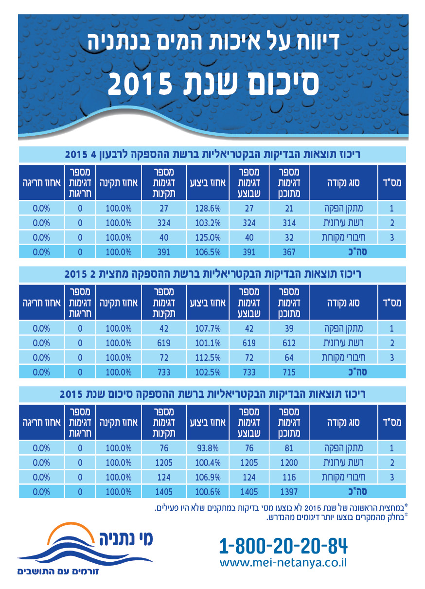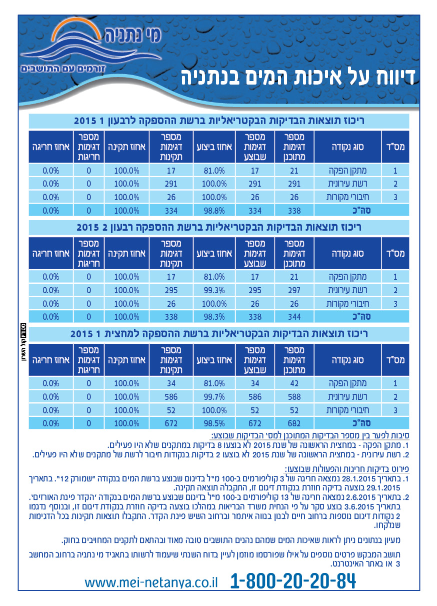 איכות מי השתייה בנתניה 2015