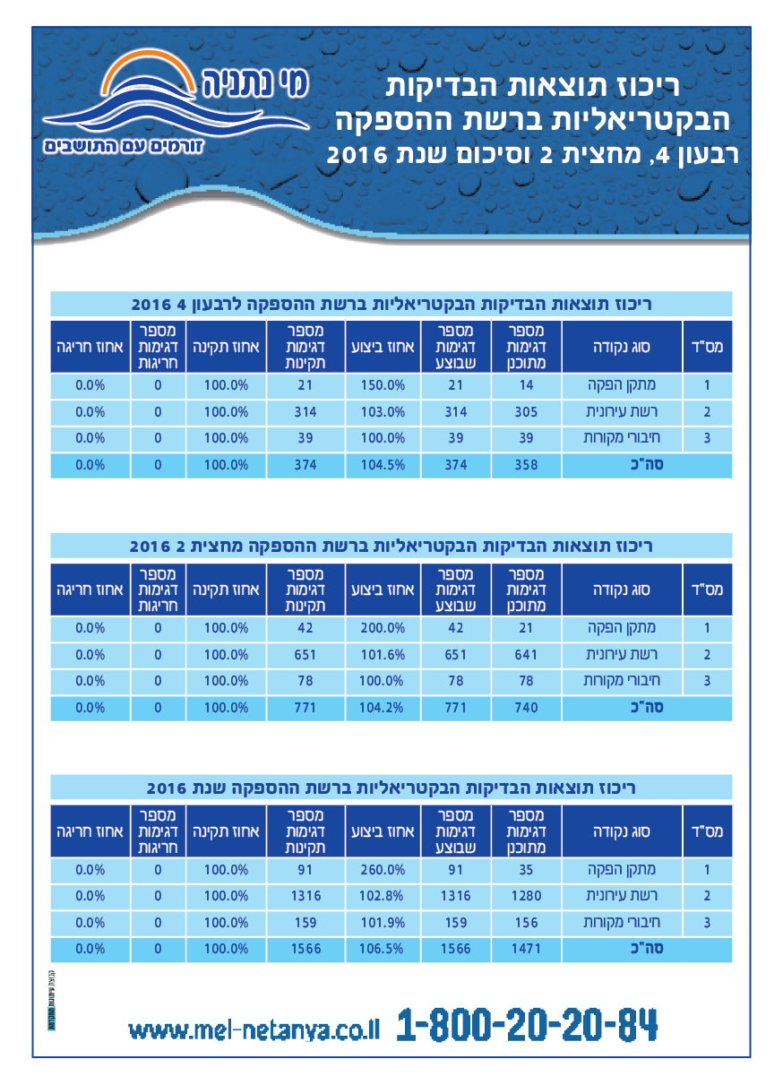 דו"ח איכות המים רבעון רביעי ומחצית שנייה 2016